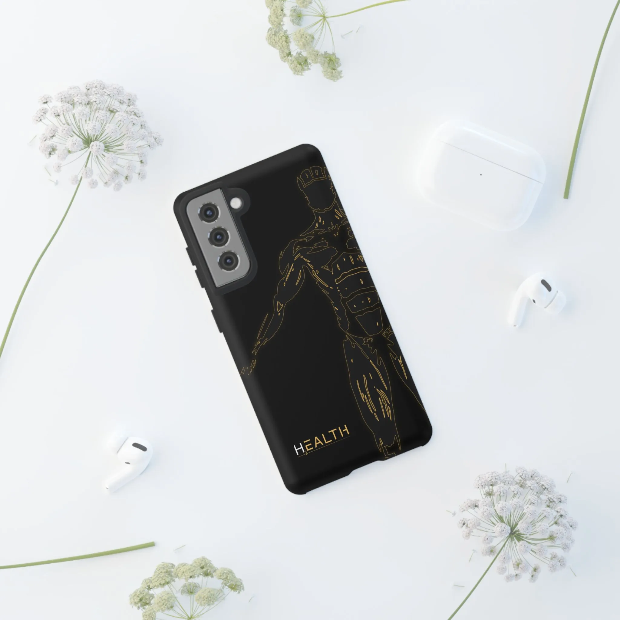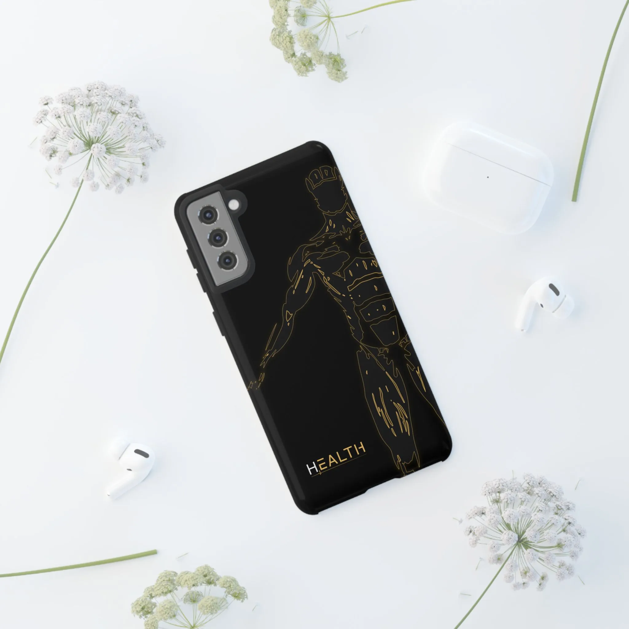 The Syncarmor case is your device’s frontline — a high-performance shield designed to protect your most essential tech while aligning with your optimized lifestyle. Featuring a gloss-black finish, gold anatomical grid design, and The H Health insignia, this case merges body, data, and intention into one powerful form.